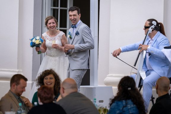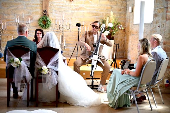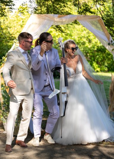 Mit live gespieltem E-Cello und atmosphärischer Musik entsteht eine einzigartige Klangwelt, die die Hochzeit und diesen Moment unvergesslich machen.